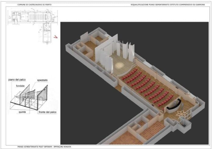 Dall’area logistica verso il fiume, nascerà un teatro in collina, nel centro del paese. Accade a Castelnuovo di Porto. Il Comune ha approvato nei giorni scorsi il progetto per realizzare nell’area seminterrata dell’istituto comprensivo ex Garrone uno spazio attrezzato per spettacoli, rappresentazioni, concerti. Avrà 80 posti, palco, camerini, impianto luci, sistema audio, servizi. Un piccolo, ma vero, teatro costruito nel rispetto di tutte le norme di sicurezza. Il progetto è esecutivo, dettagliato in tutti i particolari. Recupera uno spazio ad oggi in abbandono. E torniamo alle opere verso il fiume. Il fatto è che proprio dalle concessioni e dunque dagli oneri urbanistici di legge previsti per tutte le edificazioni industriali o civili su quei 50 ettari di area industriale, verranno le risorse che permetteranno di realizzare la struttura.