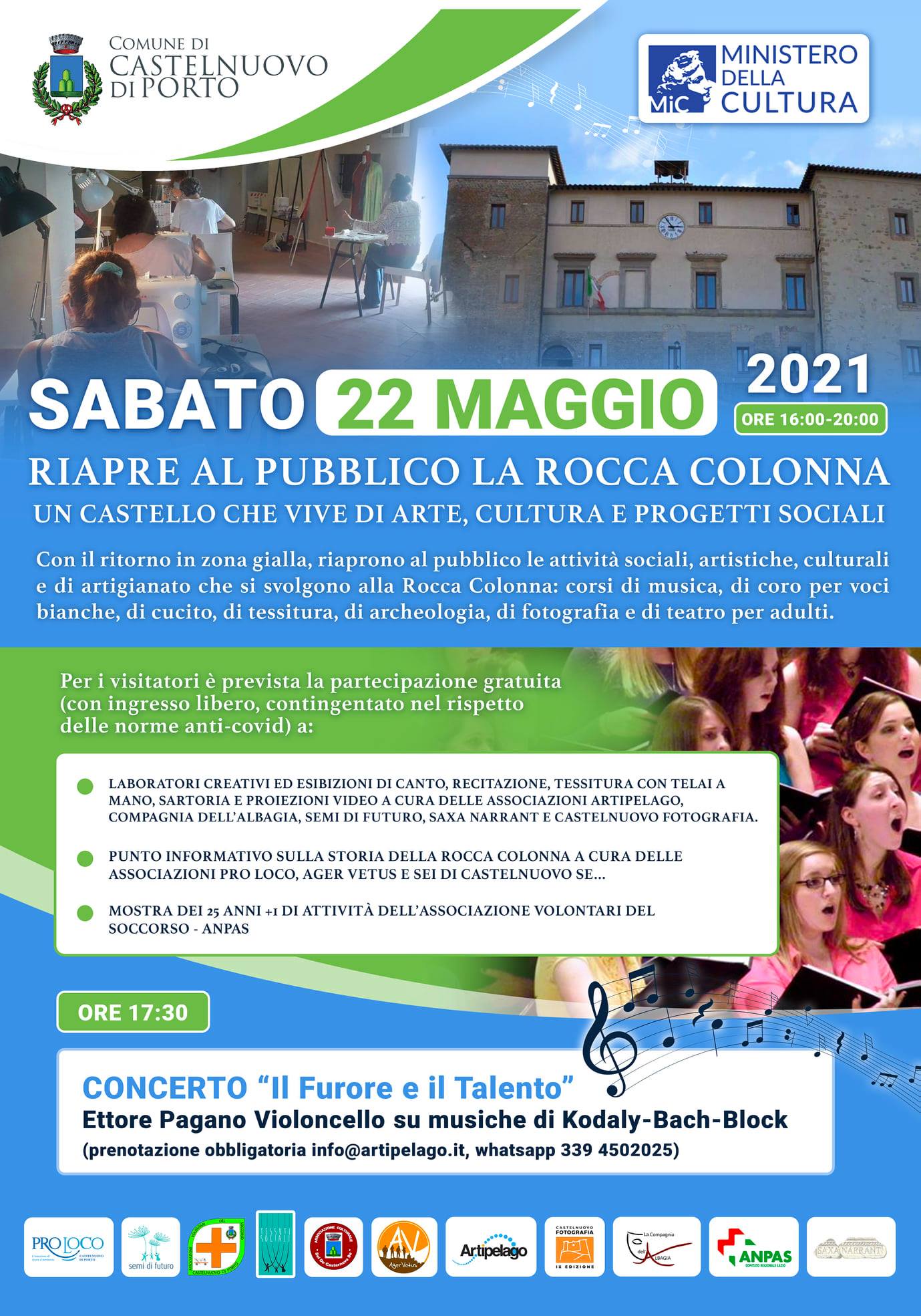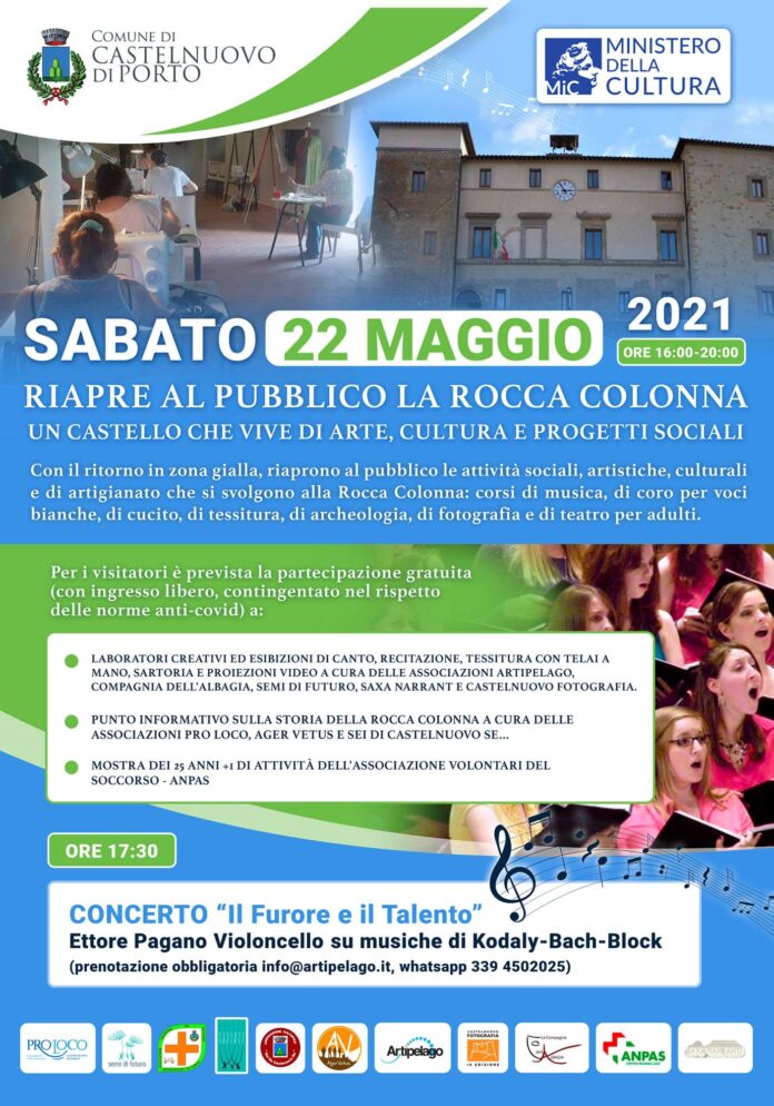???????????????????????? ???????? ????????????????????????, ???????????????????? ???????????? ????????.???????? ???????????????? ????????.????????, ???????? ????????????????????????????????̀ ????’???????????????? ???????????? ???????????????????? ???????????????????? ???????????????????????????? di Castelnuovo di Porto per celebrare la riapertura al pubblico del castello dopo il ritorno in zona gialla e per festeggiare tutte le attività che si svolgono al suo interno: corsi di musica, coro per voci bianche, cucito, tessitura, archeologia e teatro per adulti, oltre a mostre permanenti e in programma come Castelnuovo Fotografia, il Festival internazionale di fotografia e arte contemporanea e la mostra sui 25 anni dell’Associazione di Protezione Civile Volontari del Soccorso di Castelnuovo di Porto.
