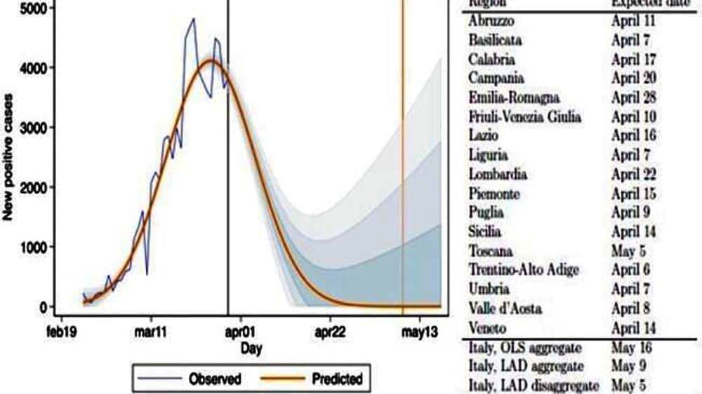 Uno studio pubblicato dall’Einaudi Institute for Economics and Finance (Eief), un centro di ricerca universitaria sostenuto dalla Banca d’Italia ma indipendente nella ricerca, ha elaborato una previsione su quando le singole Regioni e, di conseguenza, l’Italia arriveranno a quota zero “nuovi contagi”.