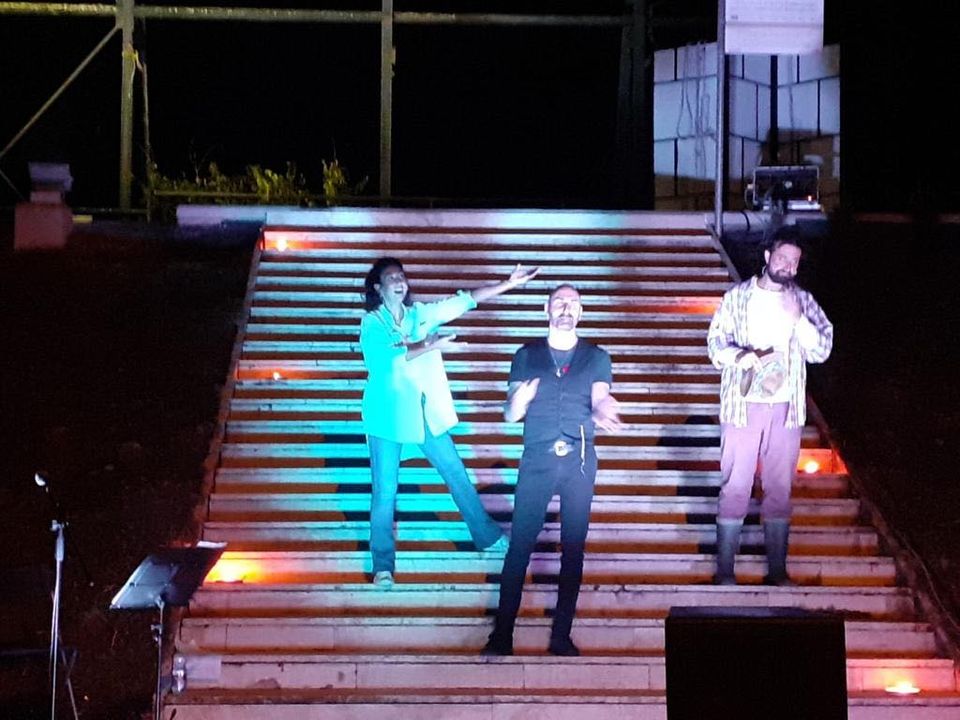 Il teatro per tornare a “riveder le stelle”, come scrisse Dante uscendo dall’Inferno. A tentare la sortita fuori le mura erette per difenderci da Covid, sono stati David Mastinu e Martina Zuccarello, due giovani artisti di Capena che, meraviglia a dirsi, della loro arte hanno fatto lavoro per vivere. Lo spettacolo è stato messo in scena due sere di metà settembre(11/12), sfidando i primi tuoni e lampi di questo mese di pioggia a catinelle. Insieme a loro Federico Urbani cantautore di valore, che ha curato la parte musicale. Un trio dalla grande intesa per rompere l’assedio dell’angoscia.