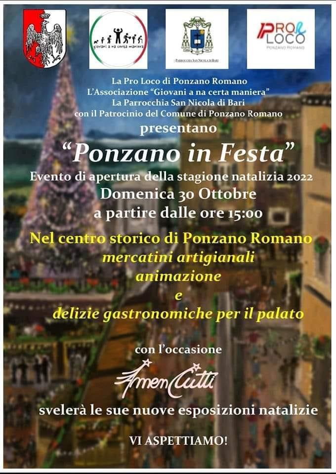 La giornata a Ponzano Romano continuerà alle ore 15:00 con l’apertura della stagione natalizia: mercatini artigianali, animazione e delizie gastronomiche accoglieranno i visitatori grazie all’organizzazione messa in campo dalla Proloco e all’associazione “Giovani a na certa maniera”, che per tutto il periodo invernale proporranno altri eventi a tema per colorare la piazza del borgo.