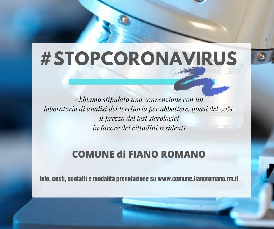 Abbiamo stipulato una convenzione con un laboratorio di analisi del territorio per effettuare i test sierologici, a prezzi contenuti e favorevoli ai cittadini residenti, per la diagnosi della COVID-19.