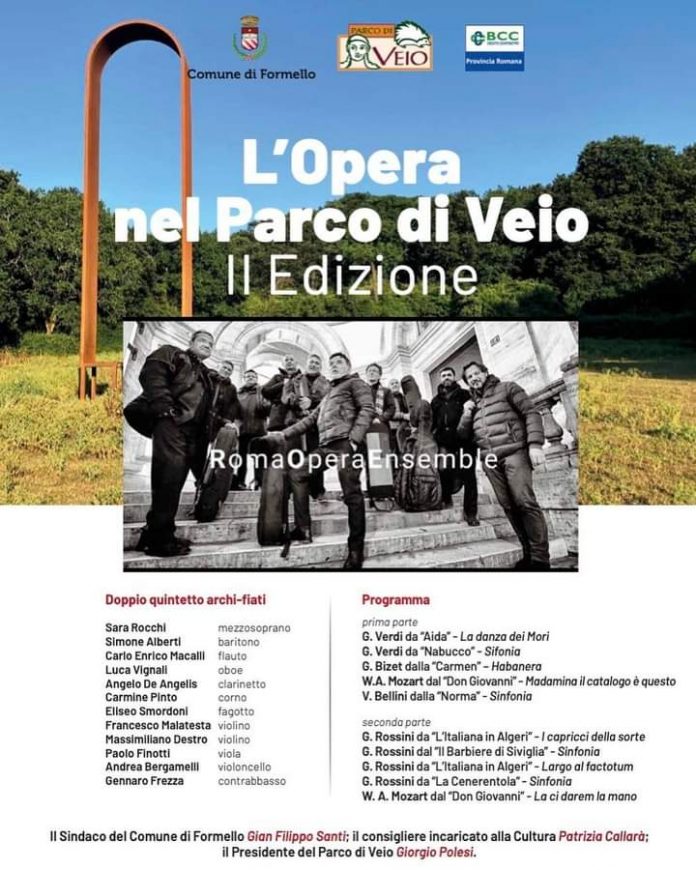 “Anche quest’anno, visto il successo riscosso dalla prima edizione, abbiamo deciso di proseguire questa esperienza unica nel nostro territorio: L’Opera nel Parco. – dichiara il Sindaco Gian Filippo Santi – I solisti della Roma Opera Ensemble ci faranno ascoltare ascoltare buona musica sotto un cielo stellato nelle valli del Sorbo, circondati dalla natura per una nuova indimenticabile serata di Formello Estate.