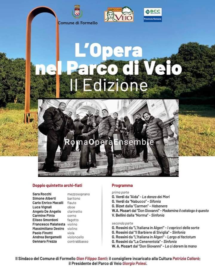 “L’Opera nel Parco di Veio” è un Progetto arte/natura finalizzato alla scoperta del meraviglioso territorio naturalistico della Valle del Sorbo attraverso un “percorso musicale” curato dal “Roma Opera Ensemble”, formata da professori d’orchestra del Teatro dell’Opera di Roma, nella tradizione del grande repertorio operistico.