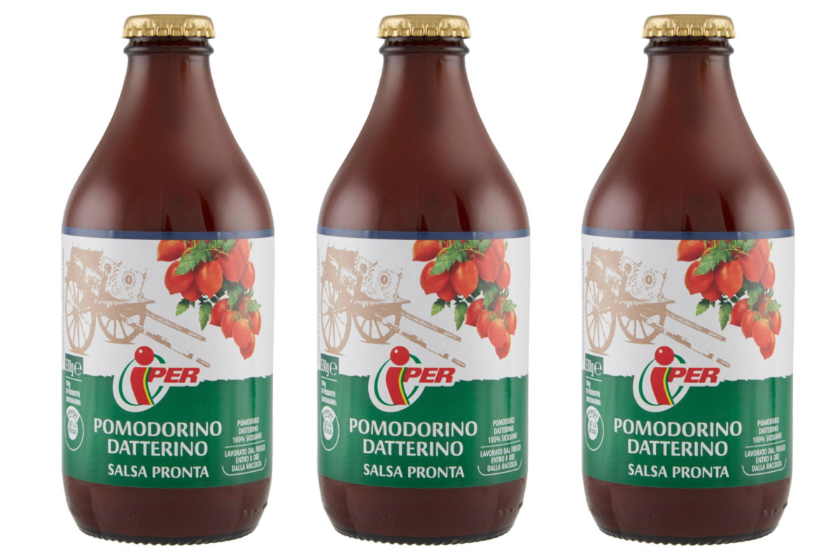 Il richiamo riguarda il marchio Iper Montebello Spa, prodotto dall’omonima società con sede in C.Da Capraro a Vittoria, in provincia di Ragusa. In particolare, il sugo richiamato è quello venduto in bottiglie di vetro nel formato da 330 gr e la denominazione di vendita riportata sulla confezione è: “Pomodoro datterino – salsa pronta“.