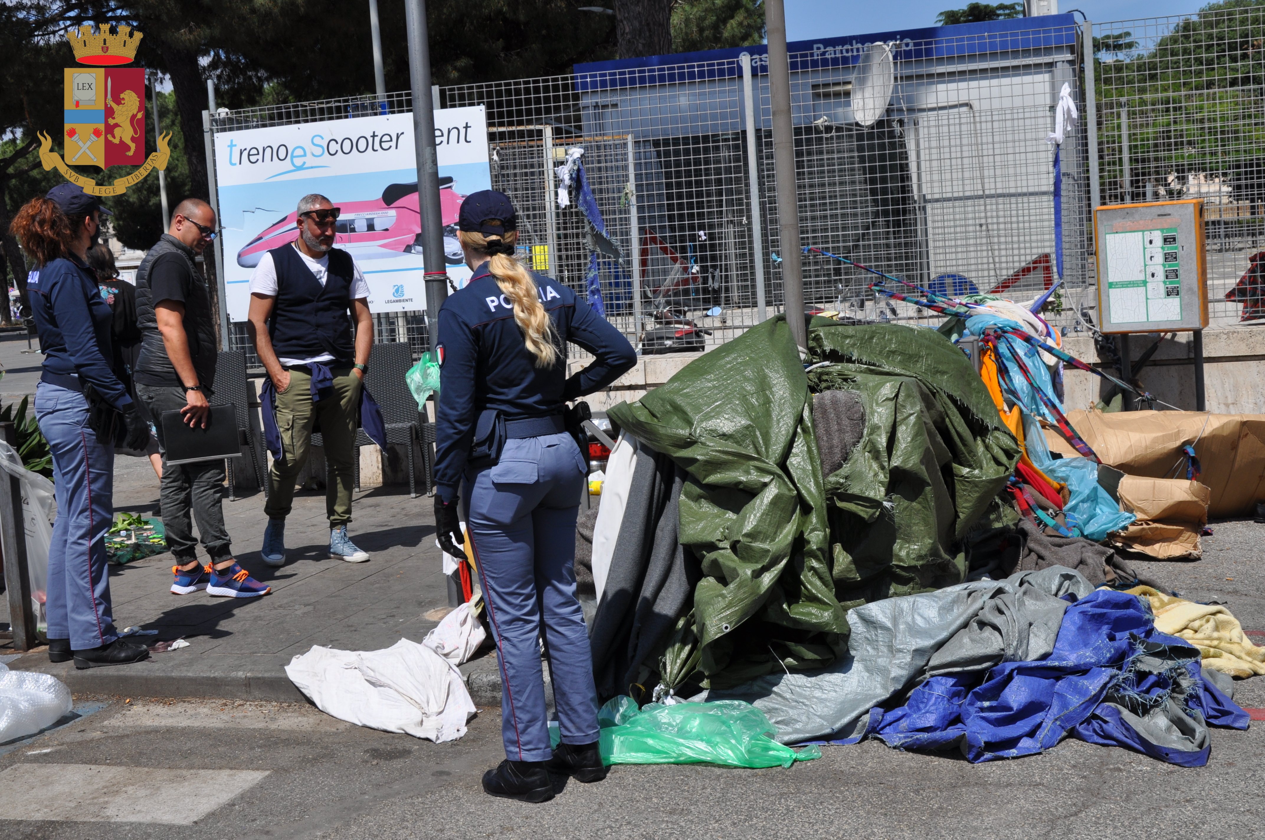 Dalle prime ore di questa mattina, come disposto dal Questore Carmine Esposito, gli agenti dei commissariati Viminale e Sant’Ippolito, unitamente alla Polizia Ferroviaria e alla Polizia Scientifica, in collaborazione con la Polizia Locale di Roma Capitale, Trenitalia e l’AMA, hanno eseguito un intervento di controllo, sanificazione e riqualificazione dell’area antistante la stazione Termini e di piazzale Spadolini (adiacente l’ingresso ovest della stazione Tiburtina).