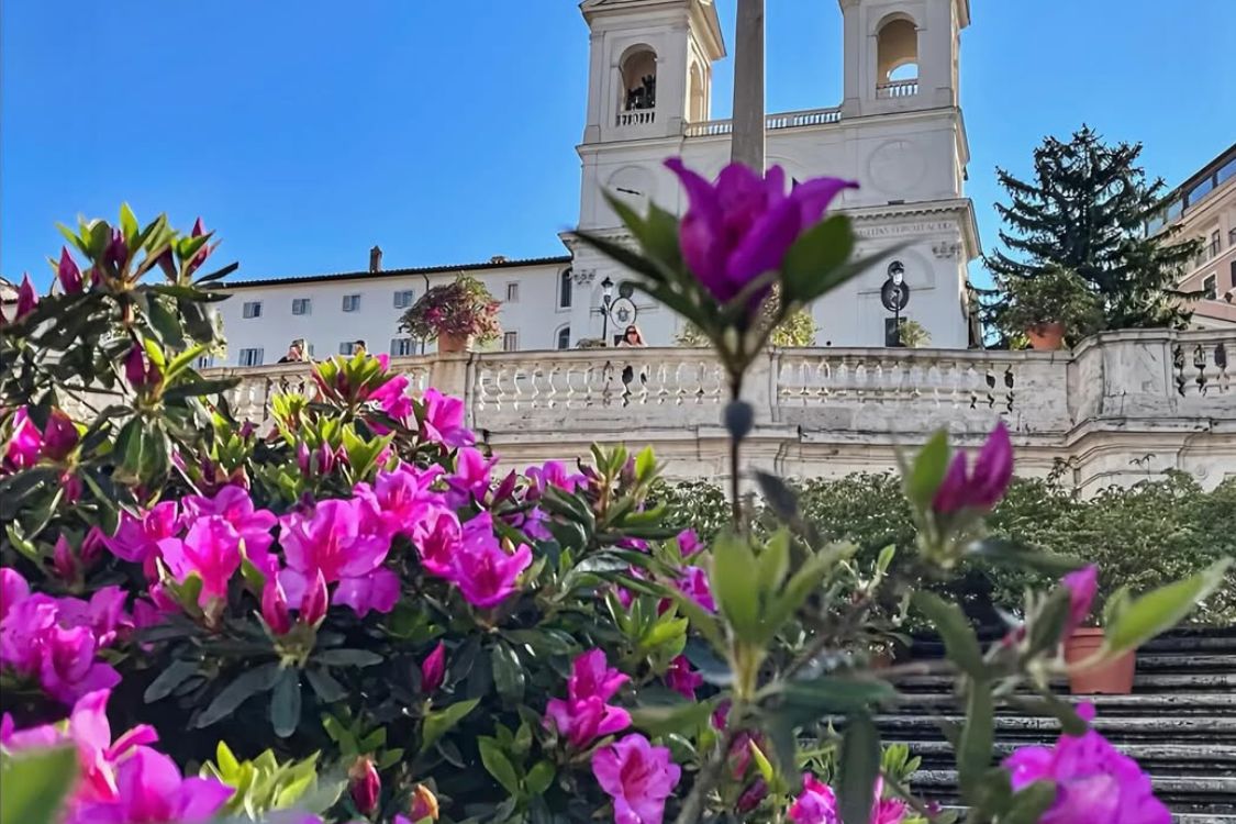 In questi giorni stanno tornando, puntuali come ogni anno, le azalee sulla Scalinata di Trinità dei Monti, pronte a colorare la Piazza di Spagna con le loro sfumature delicate e luminose: un evento profondamente legato alla primavera, che ne celebra l’arrivo nel cuore della città.