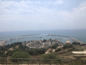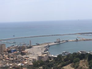 Dal castello guardando ad ovest si estende la città tagliata in 2 parti dal fiume Salso, ad est invece è possibile ammirare le spiagge della città sabbiose e di acqua cristallina, difronte lo sguardo si perde nell’infinito blu del mediterraneo. Dal castello rivolgendo lo sguardo dritto verso il mare si vedrà uno scenario particolare ed unico nel suo genere: il porto ampio e proteso verso il mare quasi in un abbraccio tra terra e acqua, poco al di sopra il vecchio cimitero sovrasta dall’alto il porto come una terrazza sul mare.